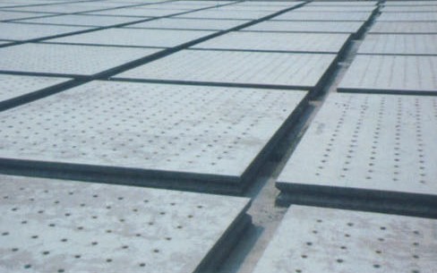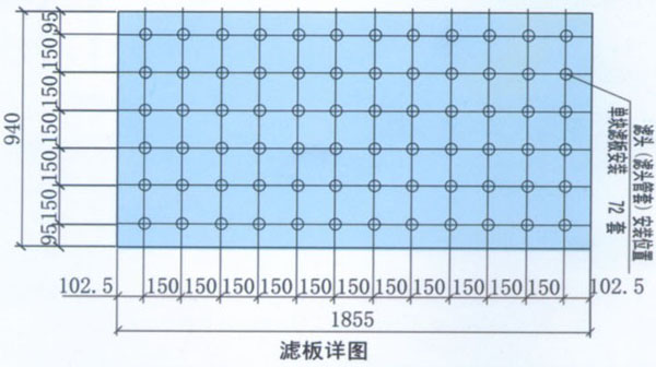 濾板采用鋼模澆筑,混凝土和水泥、砂石、水份嚴格配方,攪拌、保養(yǎng)的工藝過程。坍塌度的控制等部嚴格按國家相關(guān)標準規(guī)范操作。雙層鋼筋必須根據(jù)濾板的支撐點和受力方向進行不同的設(shè)計,確;炷姸鹊燃壓蜑V板質(zhì)量符合要求。