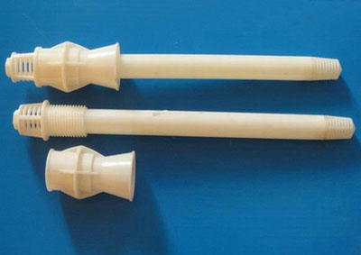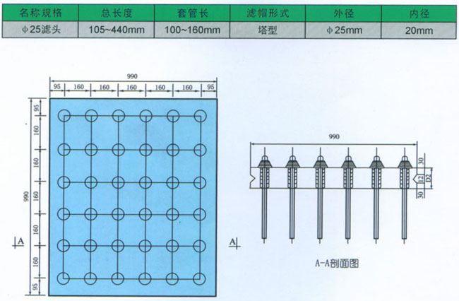 曝氣生物濾池專用防堵塞長柄濾頭,由濾桿、濾水帽、強性套管組成,濾桿套管預(yù)埋于混凝工濾扳中,并帶有內(nèi)絲螺紋,常規(guī)濾板厚度=100mm。長柄濾頭采用ABS工程塑料注塑而成,承壓強度高,踩碰不碎,連接牢固,安裝好后可保證濾頭不脫落。長柄濾頭設(shè)雙向防堵下端設(shè)有濾罩有效防止雜物進入濾桿,下濾帽外附著的雜質(zhì)可通過下降水位采清除,必要時可更換長柄濾頭與濾板間無死水區(qū),不堵塞積泥。