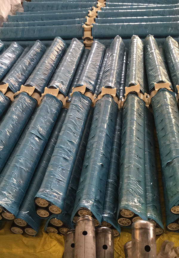 系列微孔曝氣管的氣體擴(kuò)散膠管是原裝進(jìn)口材料,理化性能穩(wěn)定,壽命長(zhǎng):均勻打孔,孔徑均勻細(xì)小,擴(kuò)展出來(lái)的氣泡直徑小,氣液界面面積大,因此,具有較高的氧轉(zhuǎn)移效率,充氧效率高。這樣與其它現(xiàn)行層氣裝置相比,可以大大節(jié)省電耗,降低污水處理的運(yùn)行成本。由于微孔曝氣器擴(kuò)散膠采用進(jìn)口優(yōu)質(zhì)橡膠制成的,它具有優(yōu)良的物理,機(jī)械性能;配件及空氣管道是采用ABS工程塑料組合的,因此,不怕銹蝕,性能可靠,在很大程度上減少了運(yùn)行維修工作量。該系列產(chǎn)品屬不易堵塞型,兼具自動(dòng)清洗、防止污水逆流的曝氣管。因鼓風(fēng)機(jī)暫停供氣時(shí),薄膜立刻收縮閉臺(tái),避免了污水逆滲于曝氣管內(nèi),當(dāng)鼓風(fēng)機(jī)再后動(dòng)的薄膜迅速擴(kuò)張并釋出氣泡,同時(shí)將黏附在膜片表面的的污泥彈離。