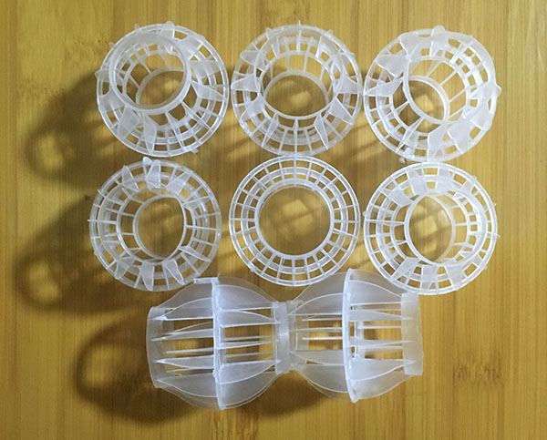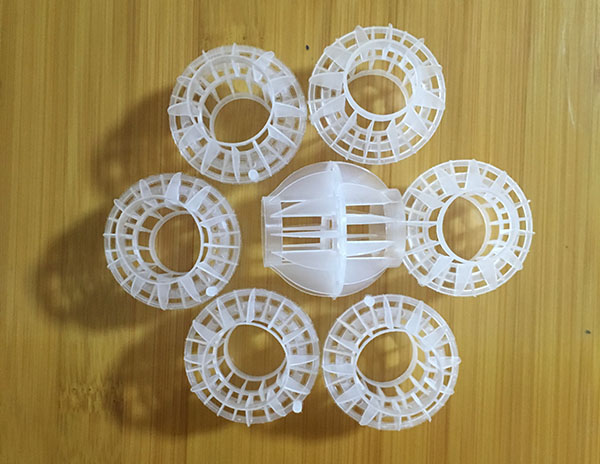 采用聚丙烯塑料制成球狀,在球中部沿整個周長有一道加固環(huán),環(huán)的上下各有十二片球瓣,沿中心軸呈放射形布置,適用于二氯化碳脫氣塔,接觸反應塔等裝置。